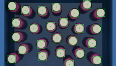 在傳送線(xiàn)的正上方安裝采集設(shè)備,裝有飲料瓶的包裝箱隨著傳送帶運(yùn)動(dòng),采集設(shè)備對(duì)每個(gè)箱子拍照一次,采集到圖像并且對(duì)箱內(nèi)的飲料瓶進(jìn)行計(jì)數(shù),如果合格則不做處理,不合格則發(fā)出報(bào)警。
