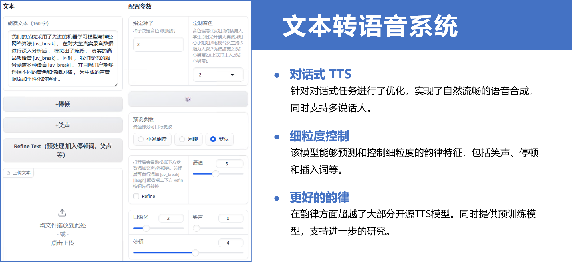 針對對話式任務(wù)進(jìn)行了優(yōu)化,實(shí)現(xiàn)了自然流暢的語音合成,同時(shí)支持多說話人。