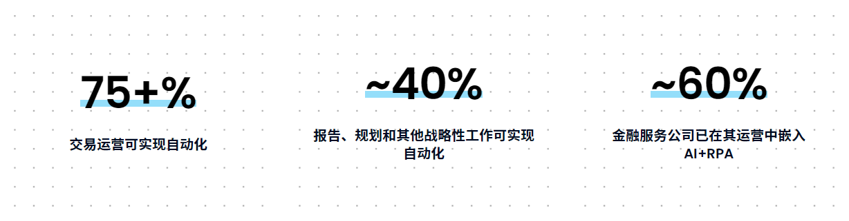 讓機(jī)器人接管貸款服務(wù)、帳戶服務(wù)、交易后處理等大批量、重復(fù)性、跨系統(tǒng)流程。在此類流程中,速度、生產(chǎn)力和準(zhǔn)確性至關(guān)重要。